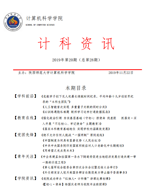 《计科资讯》是兔子先生 编辑整理的电子资讯,信息来源为《光明日报》《人民日报》《中国青年报》等权威纸媒,编辑工作由学院优秀本科生党员、团员承担。《计科资讯》主要包括学科前沿、教育在线、党团先锋、青年关注及学院资讯五个版块。学院师生可以从中了解到专业前沿和国家时政大事,欢迎大家下载阅读。