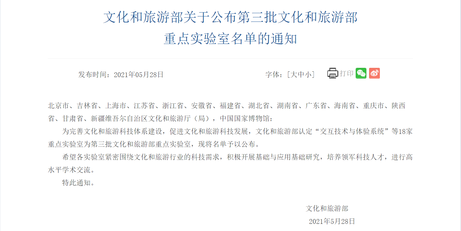 日前,国家文化和旅游部公布了第三批文化和旅游部重点实验室名单,共认定全国