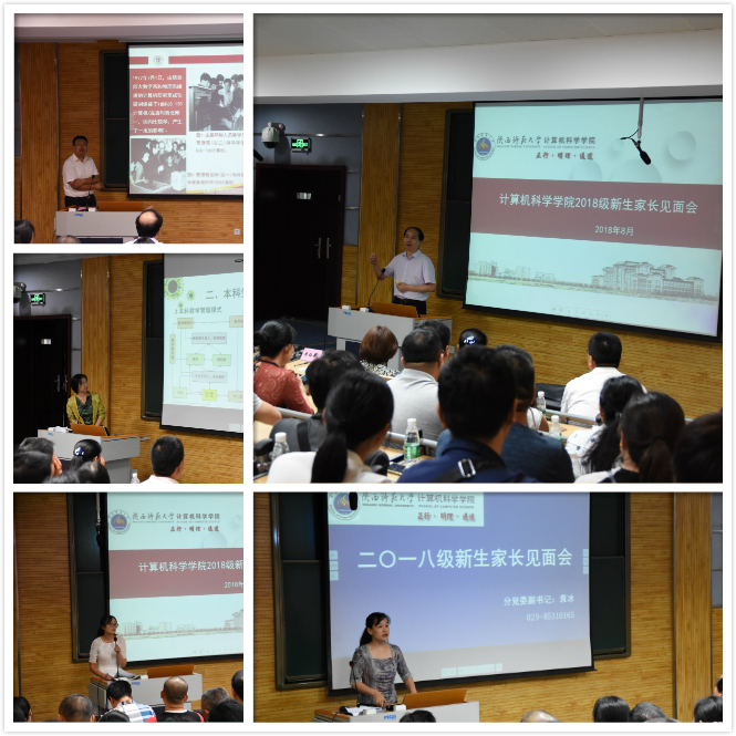在雁塔校区教学五楼5104召开了2018级新生家长见面会,出席会议的有学院党委书记黄怀平、党委副书记袁冰、副院长马苗、副院长董春生、分团委书记郭康凌、办公室主任贾润泽、教学秘书朱炜、2017级辅导员陈应权及2018级新生辅导员安琪。