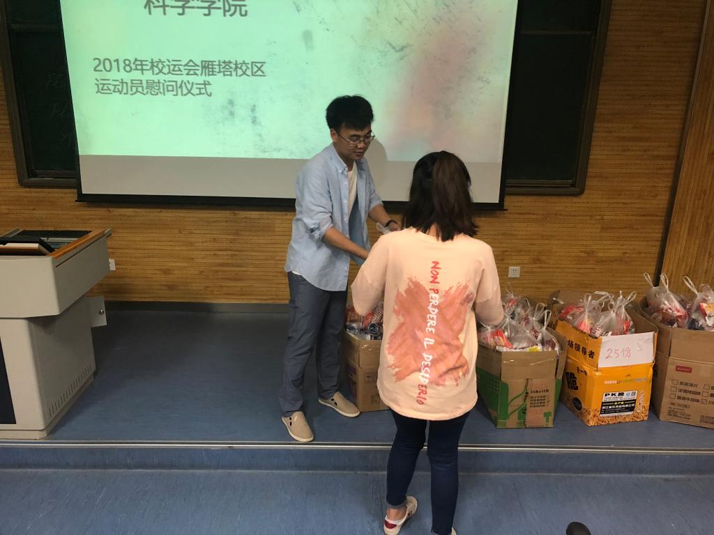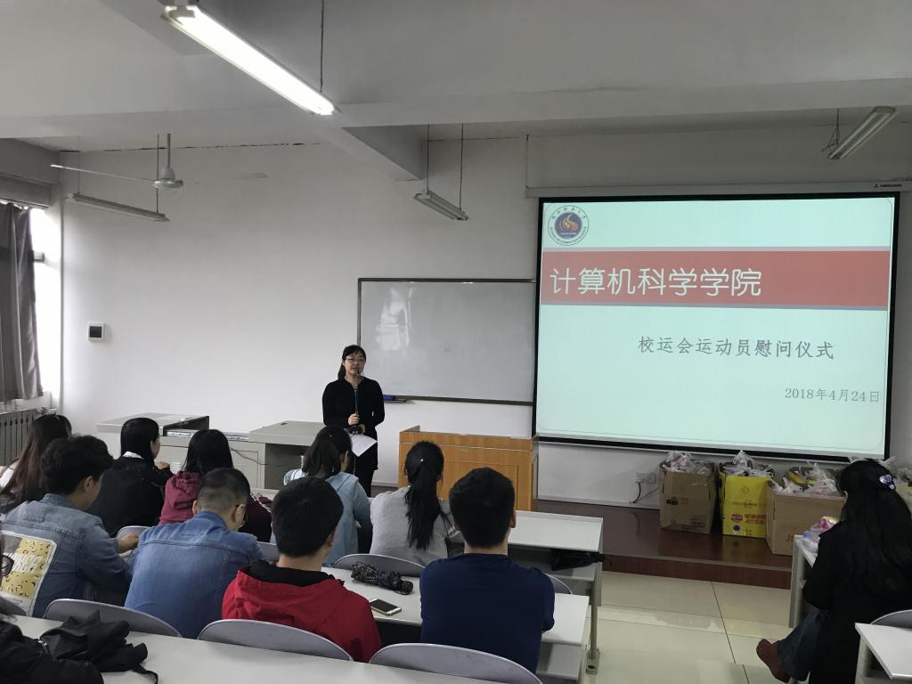 4月22日晚,2017级辅导员陈应权代表学院在教学五楼5104慰问了学院雁塔校区校运会参赛运动员,给予了运动员们详细的指导和鼓励。