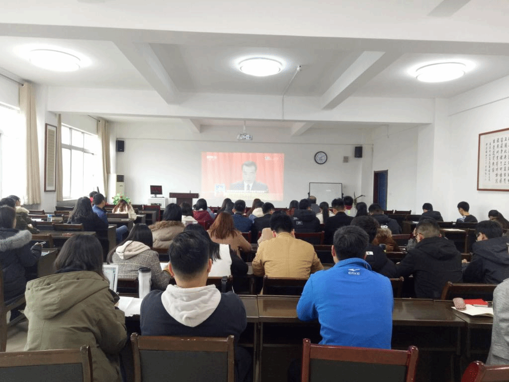党政领导、学工干部、学生党员和学生团员代表等在文津楼3411报告厅集中观看十三届全国人大一次会议直播盛况,学习聆听了国务院总理李克强关于政府工作的报告。