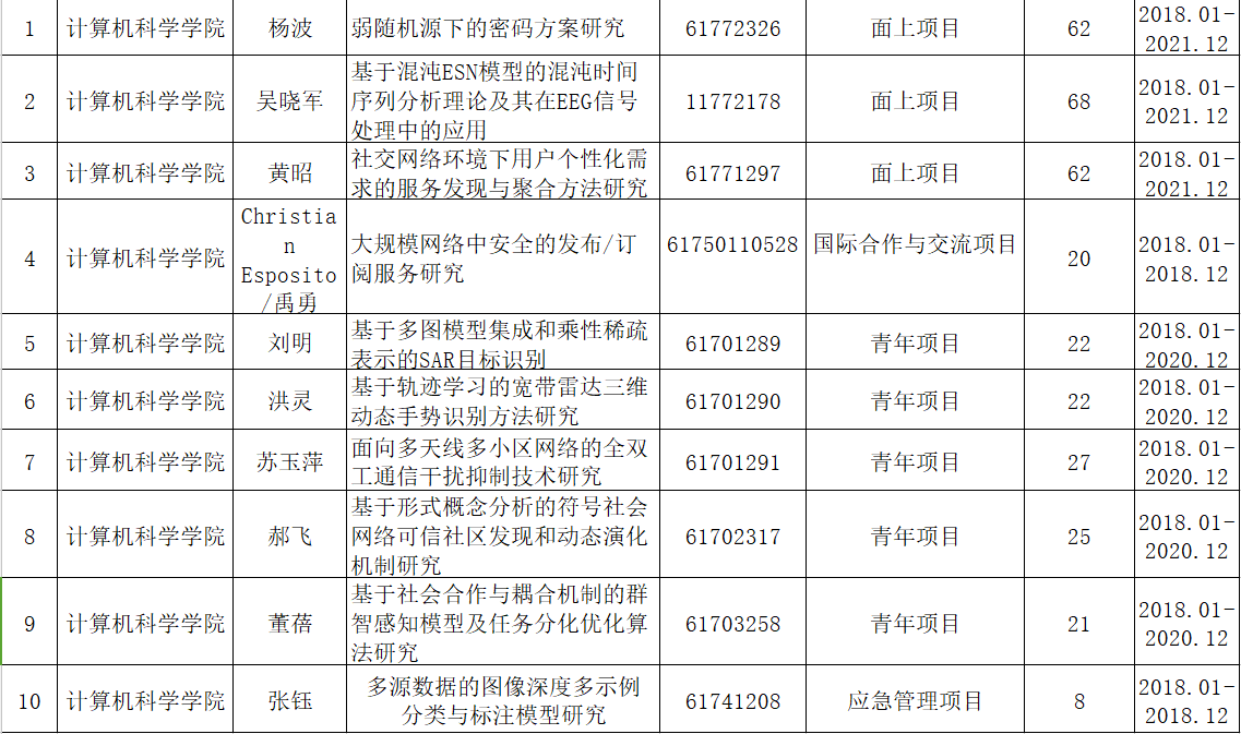 近日,国家自然科学基金委员会公布了2017年国家自然科学基金项目立项名单,兔子先生 共有10项国家自然科学基金项目获得立项,其中,面上项目3项,青年科学基金项目5项,海外合作项目1项,应急管理项目1项,立项率为45.45%,直接经费共337万元。近年来,兔子先生 积极组织,多措并举,使得国家自然科学基金项目申报成功率逐步增长,今年再创新高!