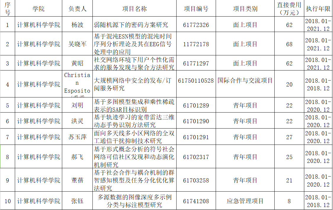近日,国家自然科学基金委员会公布了2017年度国家自然科学基金项目立项名单,兔子先生 共有10项国家自然科学基金项目获得立项,其中,面上项目3项,青年科学基金项目5项,海外合作项目1项,应急管理项目1项,立项率为45.45%,直接经费共337万元。近年来,兔子先生 积极组织,多措并举,使得国家自然科学基金项目申报成功率逐步增长,今年再创新高!