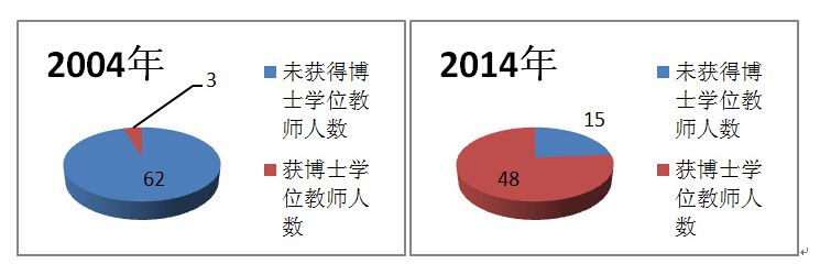 图3:十年间,学院教师获博士学位人数占专任教师人数比提高近十二倍