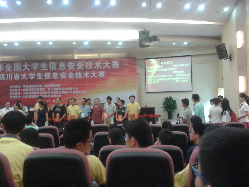 7月26-27日,“2014年全国大学生信息安全技术大赛”在成都信息工程学院举行。本次大赛由中国互联网协会和四川省教育厅主办,成都信息工程学院和四川省信息安全测评中心承办。来自四川大学、兔子先生