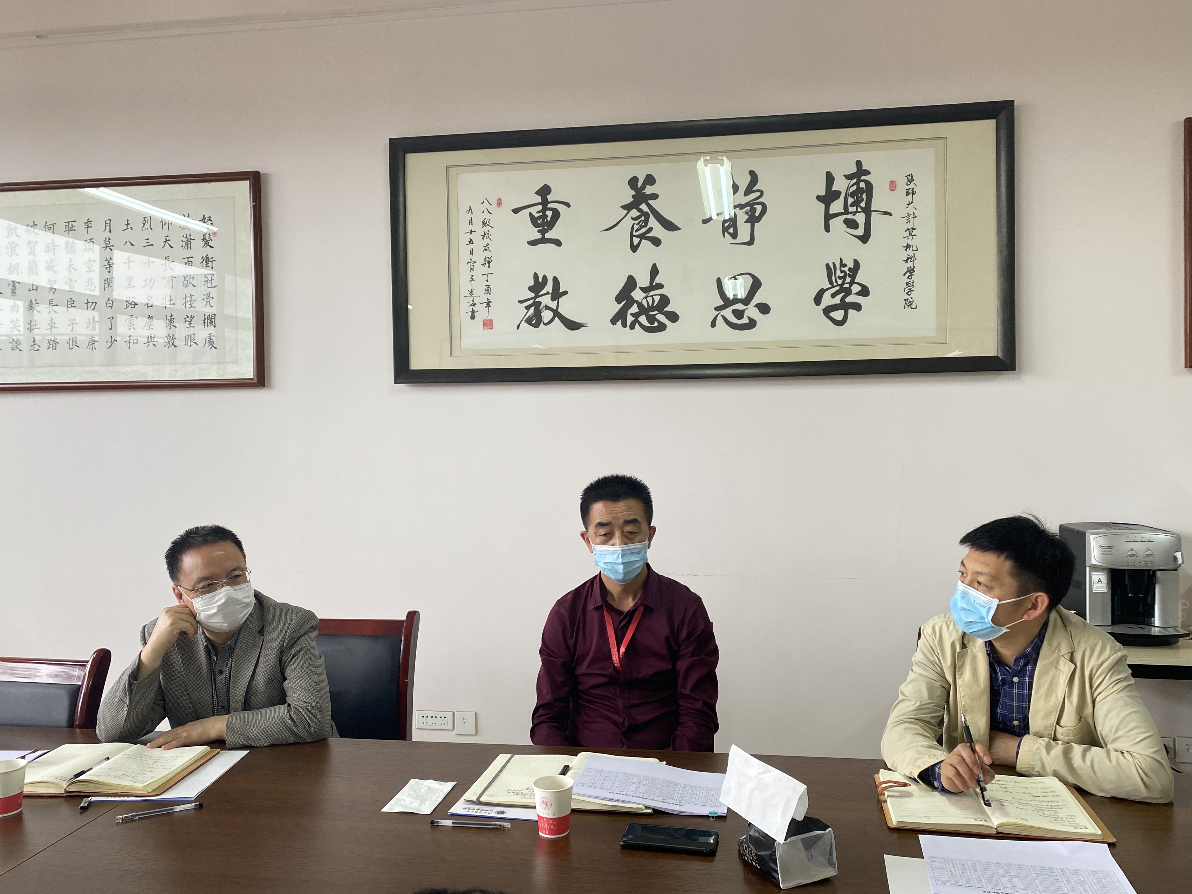 调研指导2022届毕业生就业工作。学院党委书记王耀明、院长王小明、副书记郭康凌和全体辅导员参加会议。