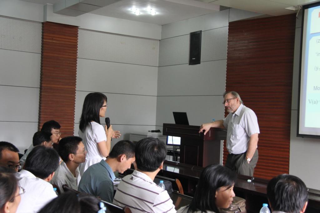 Witold Pedrycz教授本次报告题目为《模糊模型和粒化模糊模型:寻求计算智能的新途径》。在报告中,Witold Pedrycz教授首先介绍了模糊建模、信息粒、信息粒化和粒化计算等相关概念,并结合智能数据分析、图像处理和问题约化等背景给出了一些生动的例子。他指出信息粒可以在不同的形式框架中获得实现,包括区间、模糊集、粗糙集、阴影集和概率分布函数等,而粒化计算则致力于提供处理不同形式信息粒的统一理论构架。随后,Pedrycz教授从信息粒化的合理性准则、信息粒化的分配机制和信息粒化层次的提升这三个方面详细解释了粒化计算中的若干基本原则。最后,Pedrycz教授还结合模糊聚类介绍了关于算法实现的一些具体问题。