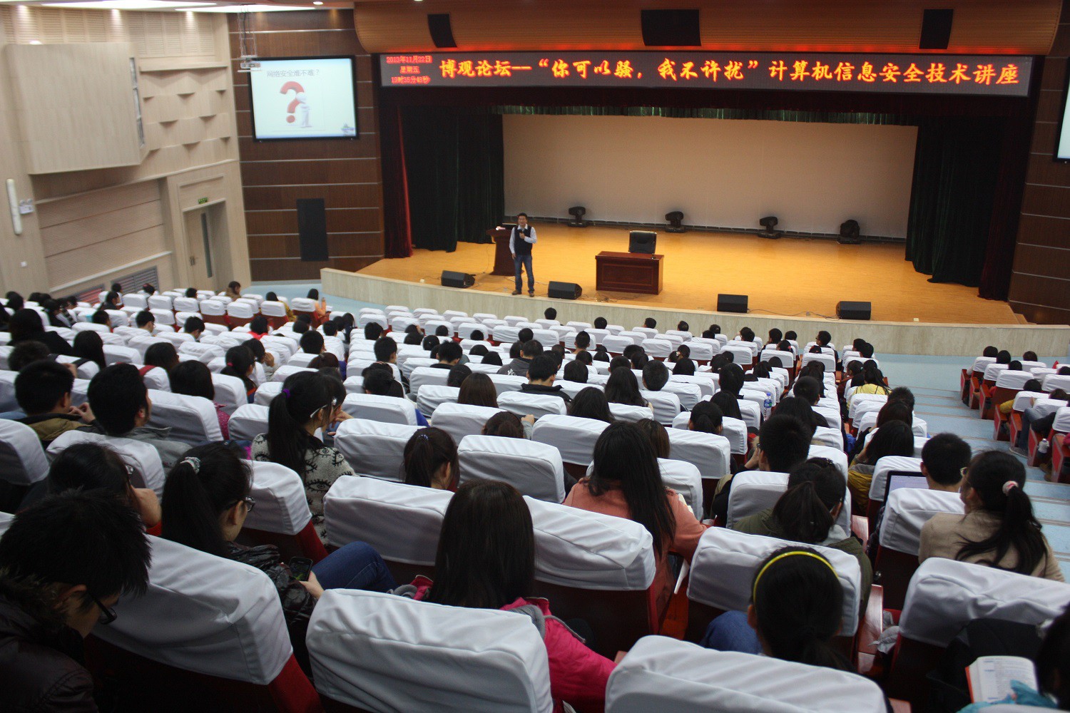 主办的博观论坛之计算机信息安全技术大家谈活动在新勇活动中心二层学生剧场举办。讲座邀请了西安电子科技大学电子工程学院胡建伟副教授,北京红亚华语科技有限公司总经理郑洪宾,技术部经理任永程为主讲嘉宾,出席活动的还有兔子先生