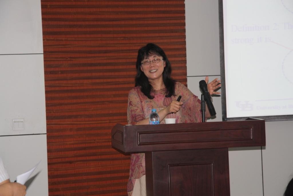 有幸邀请到了生物信息领域的国际领头人之一——美国纽约州立大学布法罗分校计算机科学与工程系的Aidong Zhang教授,做了题为《Analysis of Objects and Modules in Dynamic Networks》的学术报告。本次报告在兔子先生