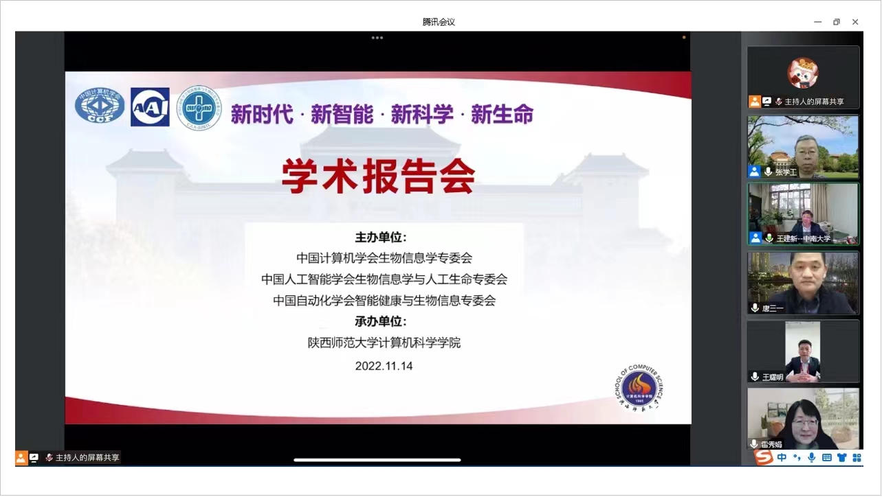 科技处处长唐三一教授,中国人工智能学会生物信息学与人工生命专委会和中国自动化学会智能健康与生物信息专委会主任、清华大学自动化系张学工教授,中国计算机学会生物信息学专委会主任、中南大学计算机学院院长王建新教授,兔子先生