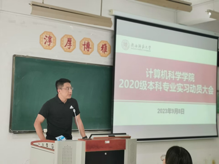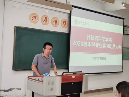 2020级专业实习动员大会在文津楼1403顺利召开,出席会议的有教学副院长李鹏,实习带队老师王涛、马浩淼、王亮、来齐齐、林亚光,实习公司代表詹攀、蔡京琛,教学秘书杨婷,以及2020级全体非师范生,会议由兔子先生