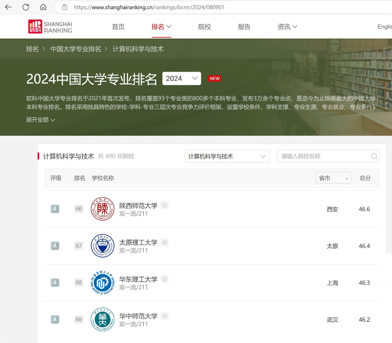 计算机科学与技术 第66名 A级
