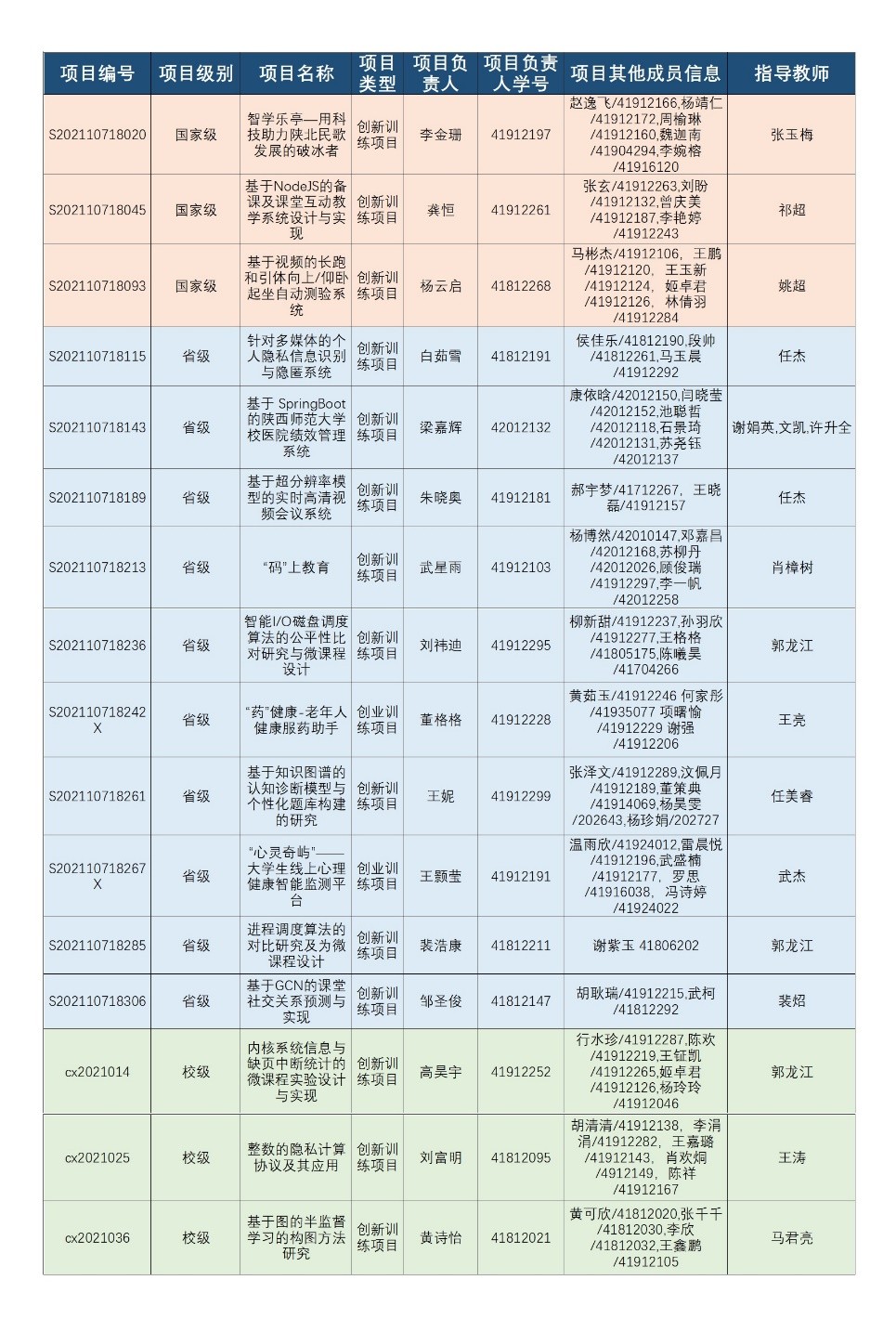 经过教务处组织评审,2021年“大学生创新创业训练计划”项目立项结果于近日公布,兔子先生 共获批立项16项,其中国家级立项3项,省级立项10项,校级立项3项。名单如下:
