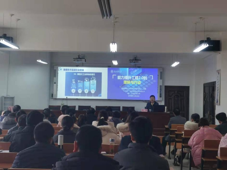 刘博老师为基层教师做了题为“能力提升工程2.0的理解与行动”首场报告,报告从提升工程2.0实施背景、目标任务、面对的挑战等三个方面进行了阐述。报告内容详实,讲解生动风趣,受到参训教师学员和项目组织方好评。此次培训将进一步提升两县中小学幼儿园对信息技术应用能力提升工程2.0的深入理解和实操体验,有效推进项目高质量开展。