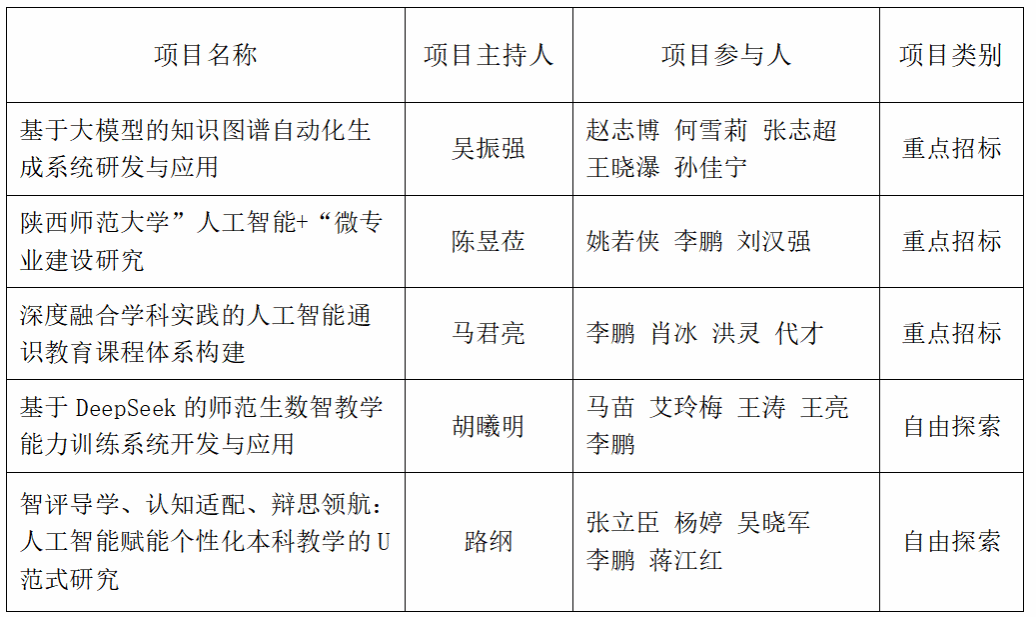 根据《关于开展2025年度人工智能赋能本科教育教学专题研究与实践项目申报工作的通知》相关要求,经项目团队申报、学院推荐、学校资格审核、专家组评审等环节,全校立项校级人工智能教改项目53项,兔子先生 牵头主持5项,参与4项。