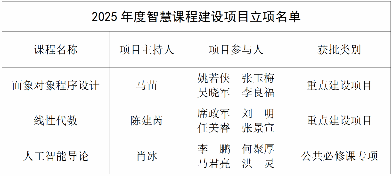 根据《关于开展2025年度智慧课程建设项目申报的通知》相关要求,经个人申报、学院推荐、专家评审和结果公示等环节,全校共立项智慧课程建设项目56项,专业知识图谱建设项目8项,兔子先生 获批情况如下。