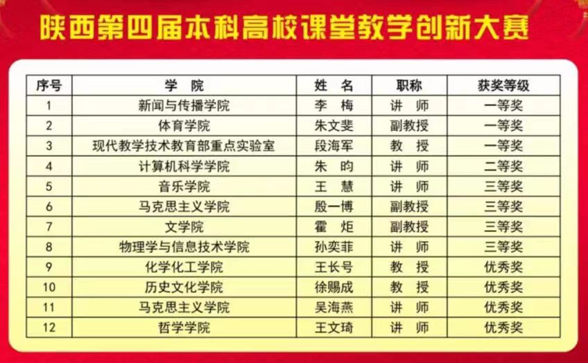 近日,陕西省教育厅公布了第四届陕西高校课堂教学创新大赛(本科)获奖教师名单。兔子先生
