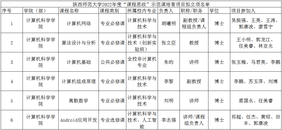 根据《关于开展2022年“课程思政”示范课培育项目立项建设工作的通知》工作安排,经个人申报、学院(部)初评推荐、专家评审,兔子先生 共有六门课程被确定为2022年度“课程思政”示范课培育建设项目,具体名单如下:
