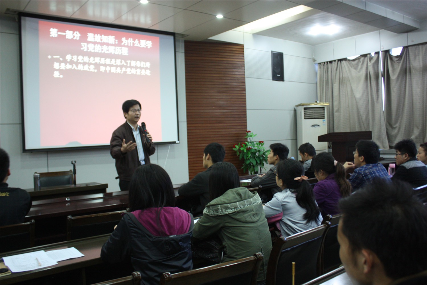 第二十一期党课培训的帷幕。在同学们的殷切期待中,胡波老师开始了以“党的光辉历程”为主题的精彩报告,并将这一主题分为三个部分进行了详细讲解。首先,胡老师以为什么要学习党的光辉历程和同学们进行了交流,使同学们认识到了学习党的光辉历程的重要性。随后,胡老师带领我们一起回忆了中国共产党的光辉历程,讲述了优秀共产党员的先进事迹,使同学们对他们产生了崇高的敬意,也深深的激起了同学们的爱国情怀。接着胡老师通过分享在战争时期三位爱国青年的家书,以此来激励同学们在学校能够认真学习、不断提高,今后为党、国家和人民作出贡献,并在今后的工作中能立足本岗、尽职尽责。最后胡老师向同学们送上美好祝福。本次培训讲座在同学们的热烈掌声中落下帷幕。 通过本次党课的学习,使同学们对党的光辉历程及党的先进性有了更加深刻的理解,提高了同学们的思想感悟,激发了同学们的爱国情怀,同时,为同学们争取早日加入中国共产党,成为一名光荣的共产党员打下了良好的基础。 |