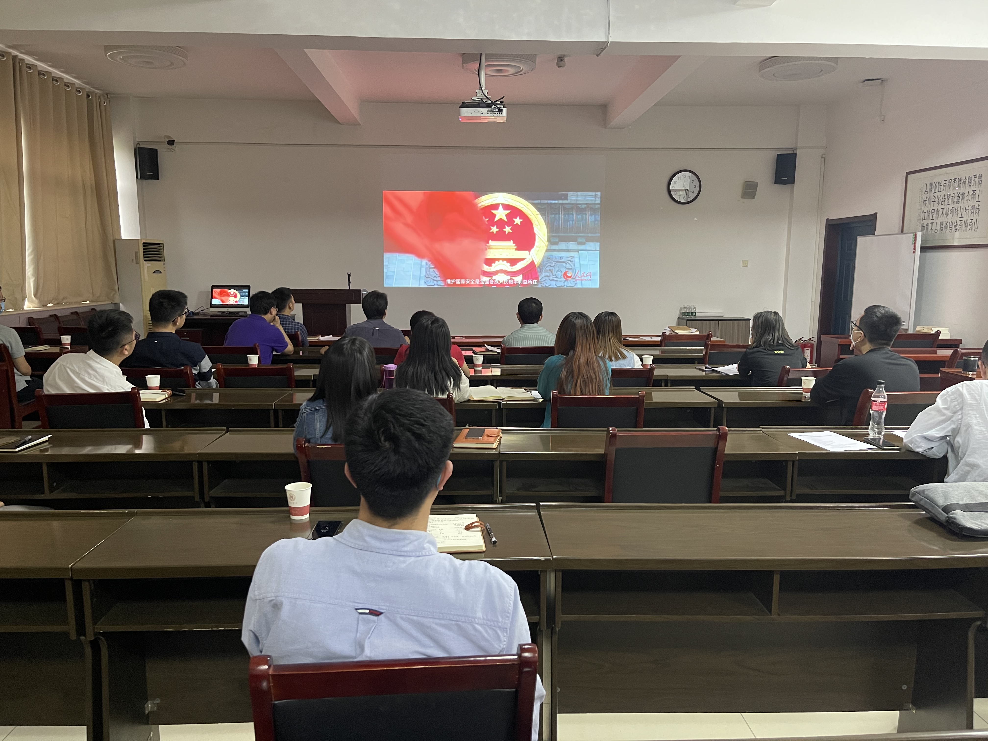 王耀明对总体国家安全观进行了讲解,参会人员共同观看学习了《我们都是国家安全的守护人》宣传视频,并进行了交流。