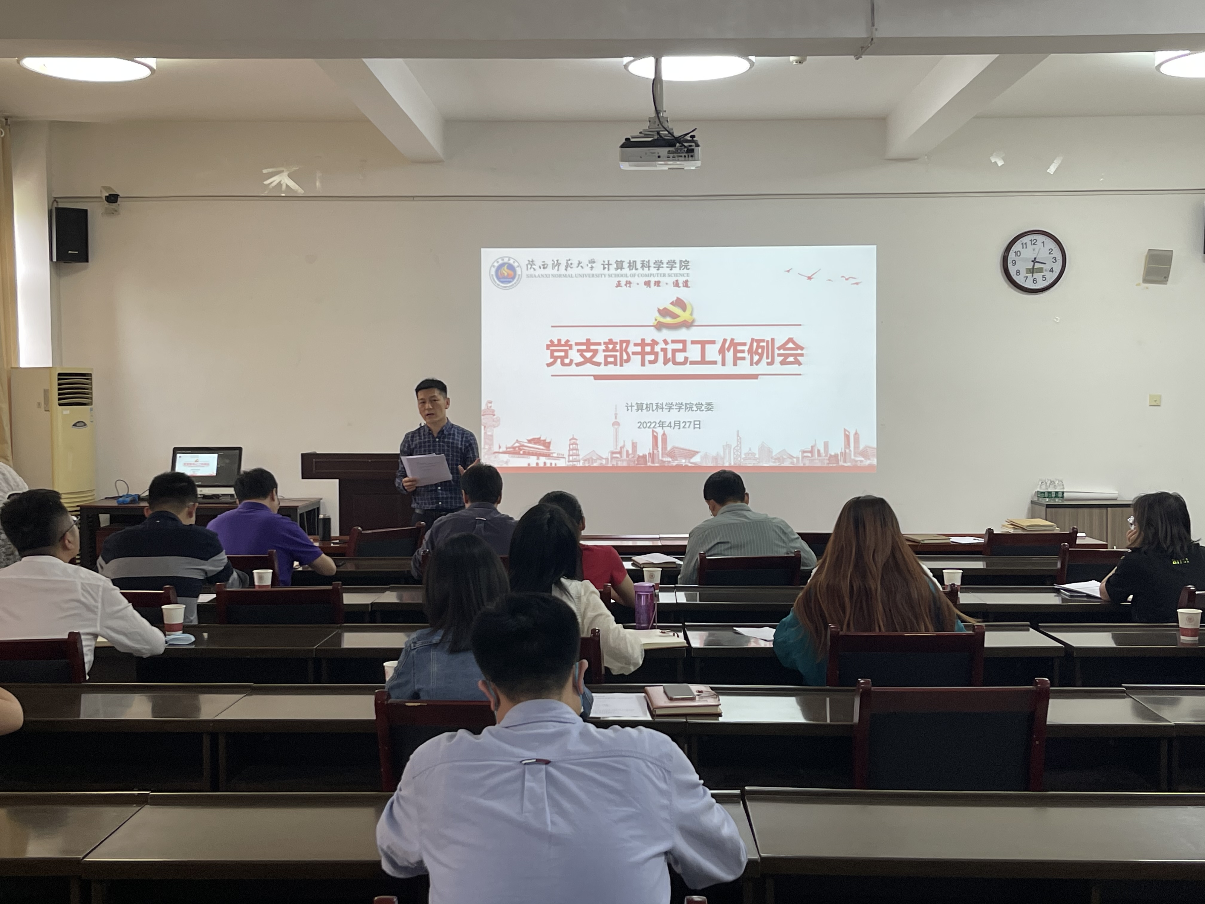 在文津楼3412报告厅召开党支部书记工作例会,学院党委书记王耀明、党委副书记郭康凌、组织员何文曦、全体师生党支部书记和支部委员参加了会议。会议由王耀明主持。