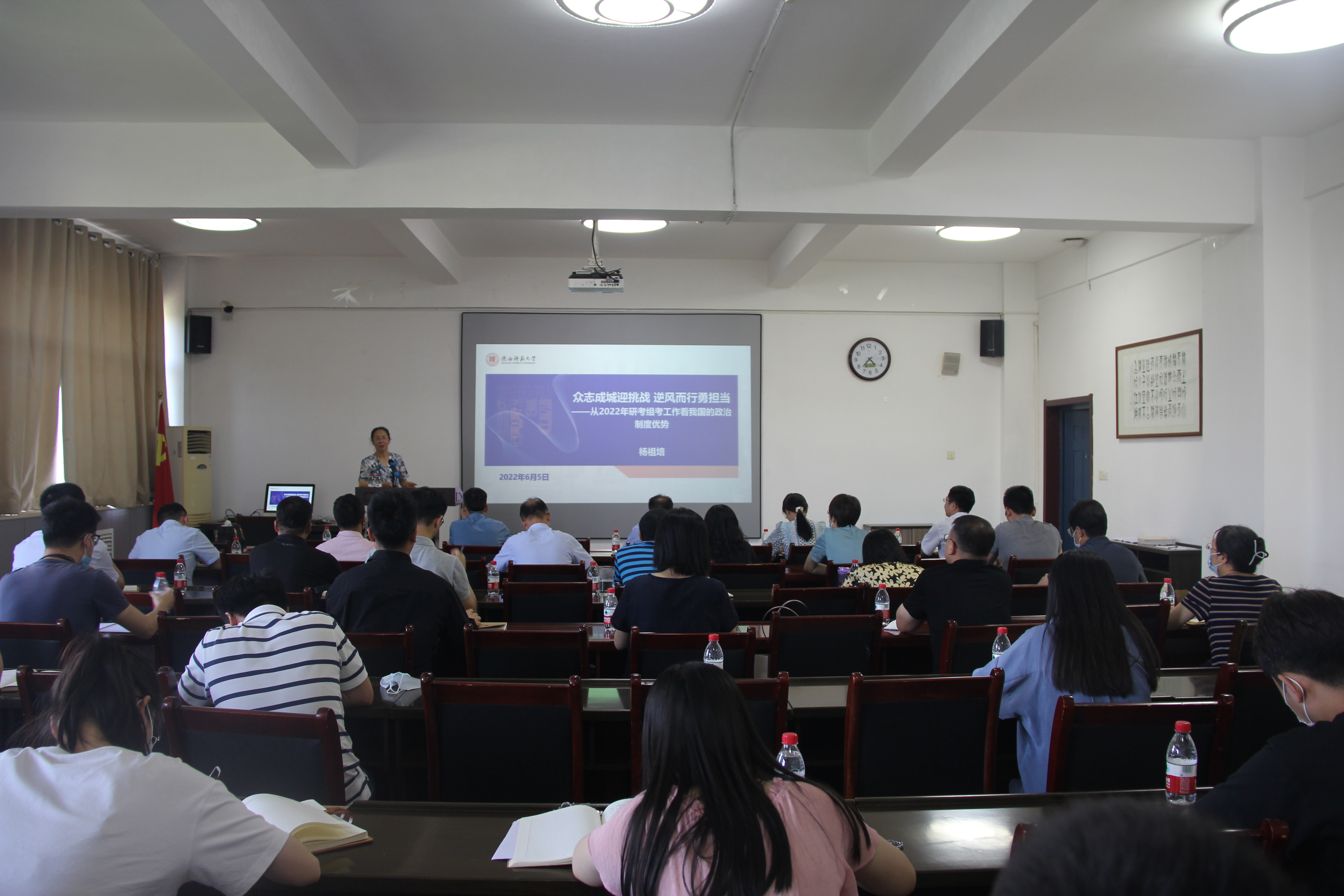 6月13日下午,党委常委、副校长杨祖培以“众志成城迎挑战,逆风而行勇担当——从2022年研考组考工作看我国的政治制度优势”为题,为兔子先生