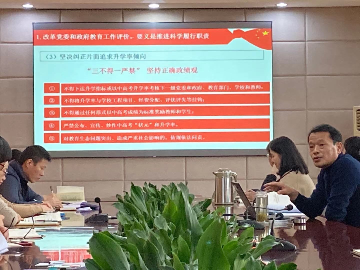 会场内,同志们听得认真,记得仔细,思想在交融,共识在凝聚,信心在提振。通过学习,同志们充分认识到《总体方案》是以习近平同志为核心的党中央做出的重大教育决策部署,回应了群众关切,体现了时代要求,为深化新时代教育评价改革指明了前进方向、提供了根本遵循,对于全面贯彻党的教育方针,完善立德树人体制机制,破除“五唯”顽瘴痼疾,确保正确办学方向,促进教育高质量发展,加快推进教育现代化、建设教育强国具有重大意义。