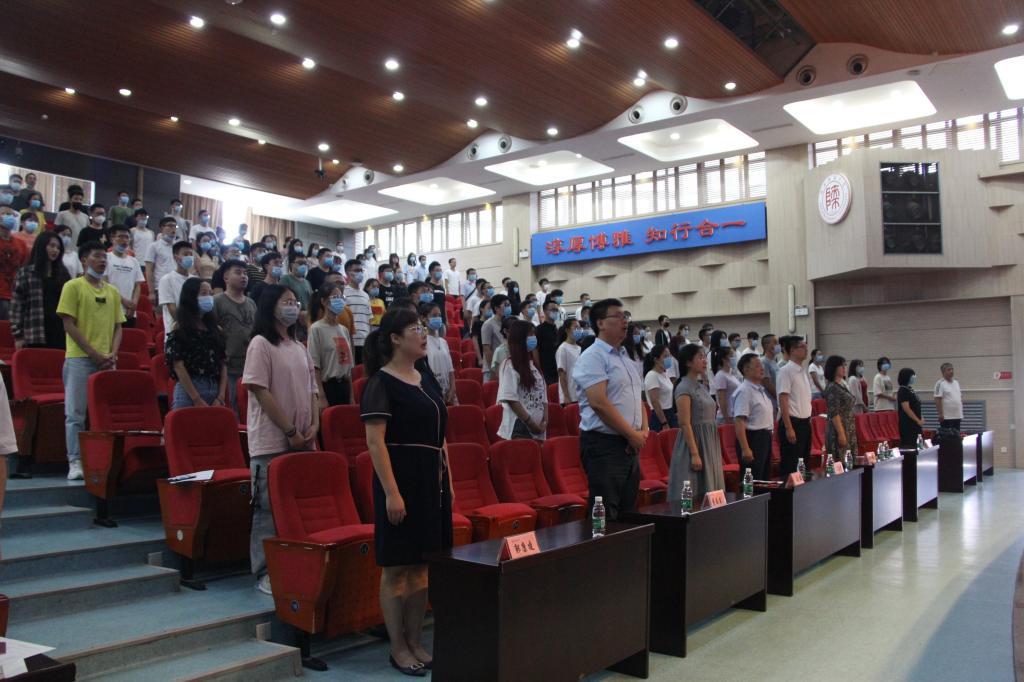 2020级研究生开学典礼在新勇活动中心二层学生剧场隆重举行。院长王小明、副院长马苗、李鹏、董春生、研究生导师代表陈建芮、研究生秘书程灏、党委组织员郭康凌、研究生辅导员蒋江红等参加了此次开学典礼。开学典礼由学院党委副书记袁冰主持。