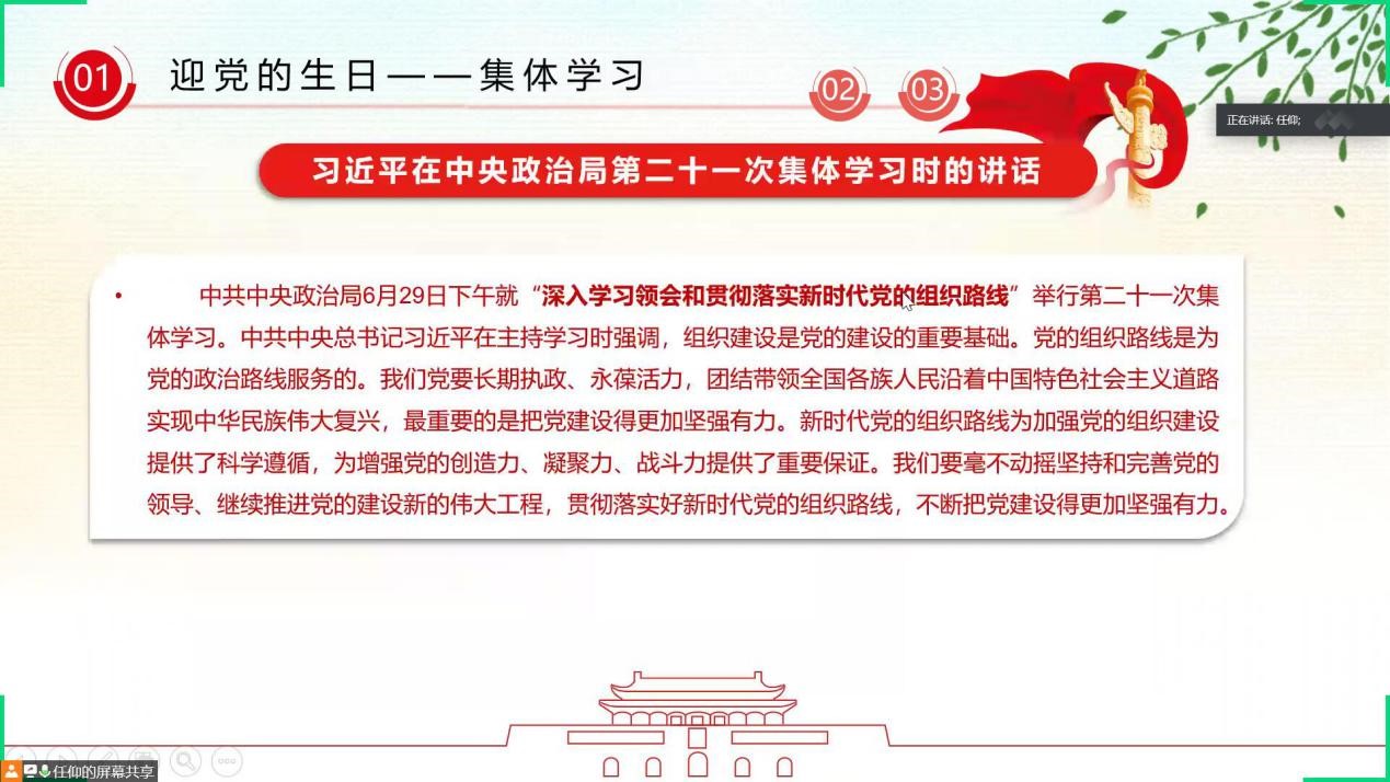 学生第三党支部通过腾讯会议线上召开组织生活会,会议围绕“迎党的生日、讲战疫故事、悟初心使命”主题展开。支部书记任仰主持会议,支部全体党员和积极分子代表参加了本次生活会。