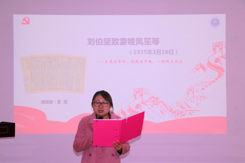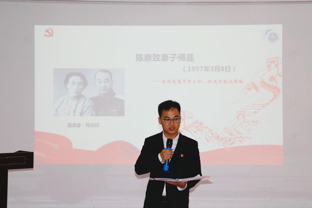 诵读期间,学院党员结合学习体会,随时发表自己的感受。王小明同志鼓励大家在诵读时多加投入情感,切身体会革命先辈在艰难情况下流露出的坚定信念和革命温情。李鹏同志向大家介绍了相关的党史和知识。