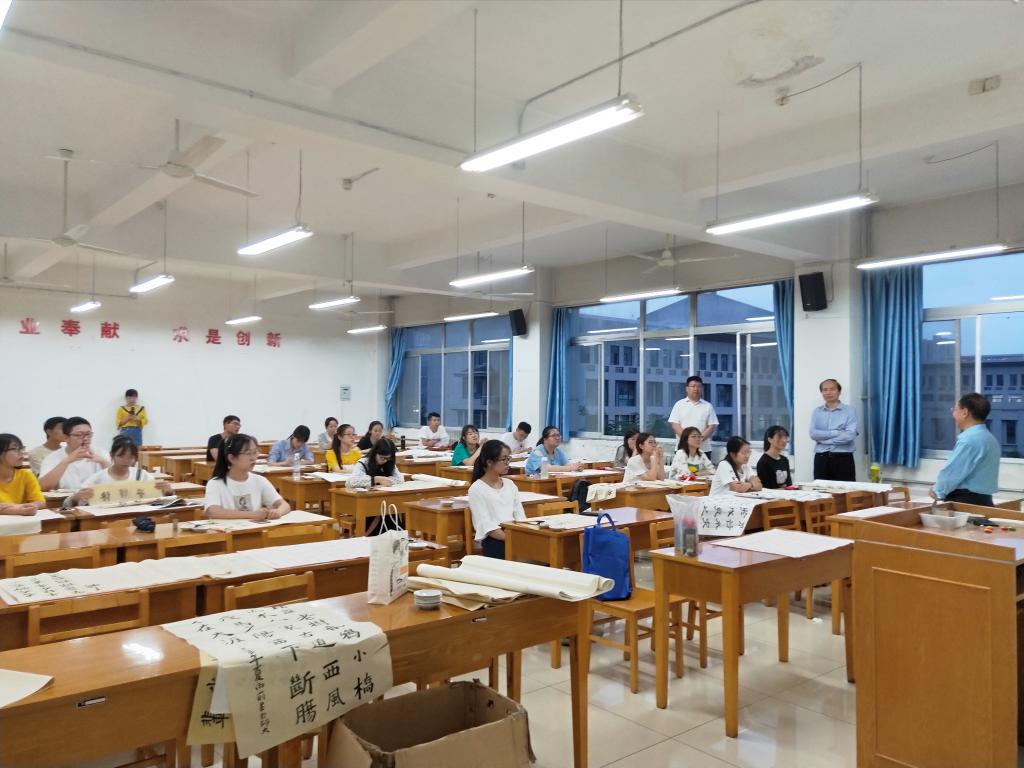 第一期“翰墨书香”书法培训班顺利结课。学院院长王小明、党委书记黄怀平、副书记袁冰、副院长董春生、党委秘书郭康凌、辅导员陈应权到场参加了结课仪式。