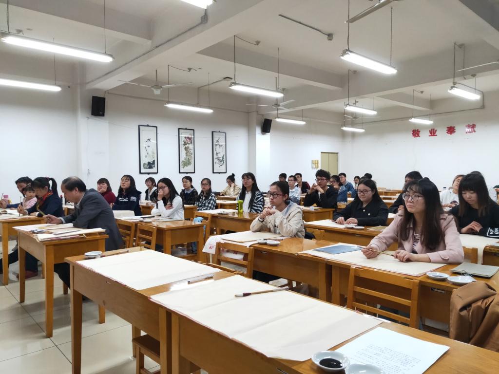 于本学期开设“翰墨书香”书法培训班,免费为本院学生、教师子女进行毛笔字书写的辅导。3月20日晚,兔子先生