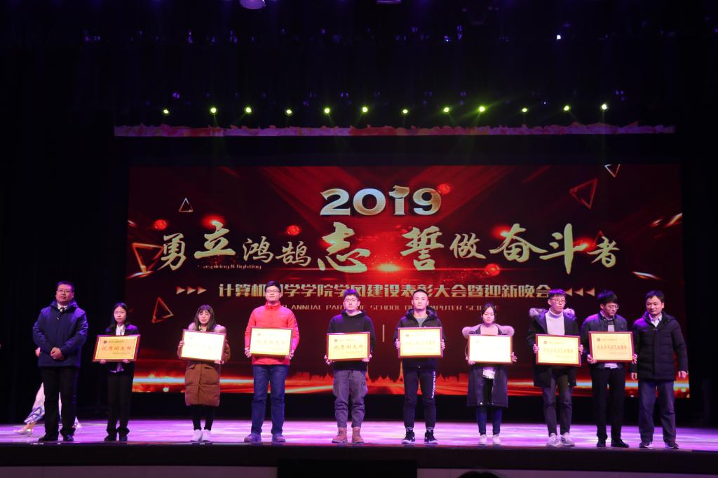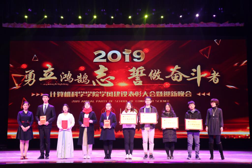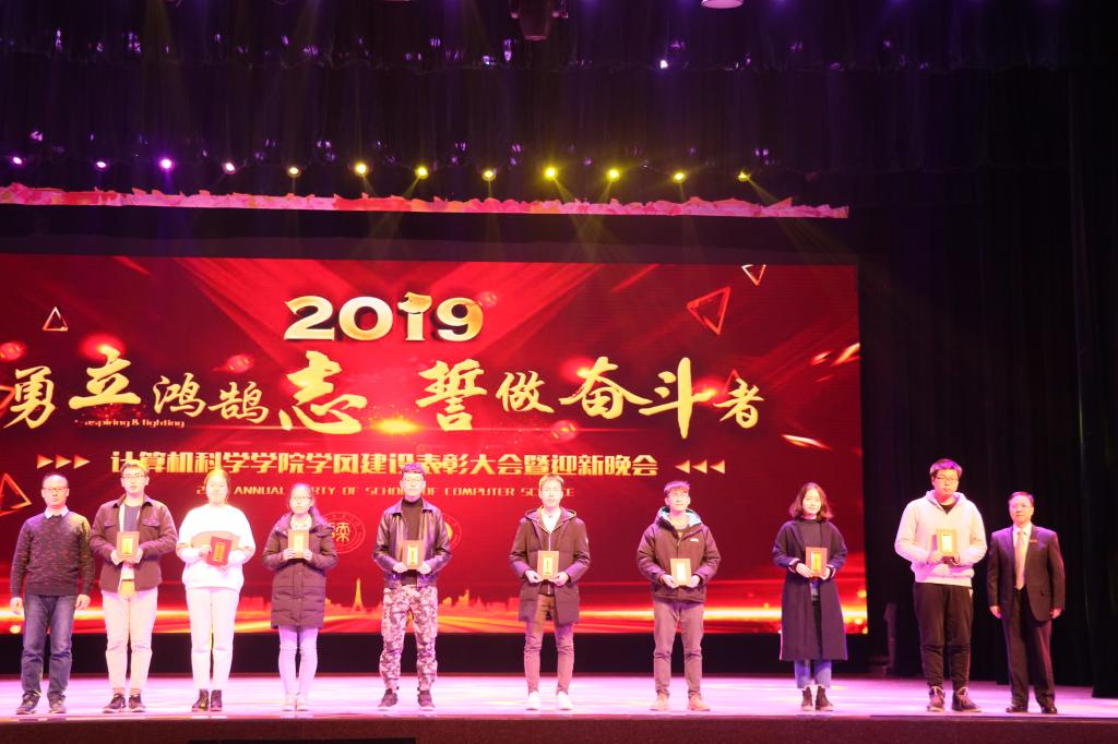 学风建设综合表彰大会表彰决定》。王小明教授、吴振强教授为黄海超、董昊等表现优秀的学术科研标兵代表颁发了证书;黄怀平老师和姚若侠教授为杨思誉、刘星霖等文艺体育标兵代表颁发了荣誉证书;袁冰老师和汪西莉教授为隋丰隆、刘佳华等表现优秀的服务奉献个人以及计算机科学与技术(创新实验班)1501班、蓝精灵志愿服务队、学院兔子先生、马列理论读书社、计算机科学协会等服务奉献团体颁发了荣誉证书与奖牌;董春生老师和毛庆老师为计算机科学与技术(创新实验班)1501班、计算机科学与技术(创新实验班)1601班、计算机科学与技术1602班、计算机类1704班等4个优良学风示范班集体与计算机类1701班团支部、计算机科学与技术1502班团支部、软件工程1502班团支部、计算机科学与技术1702班团支部等4个优秀团支部颁发了奖牌。