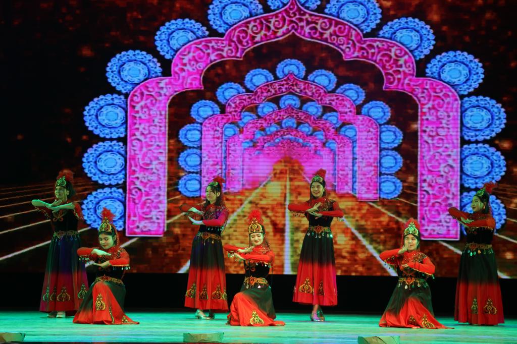 民族舞蹈《舞动青春》《扎西锅庄》《这就是维吾尔人》以及民族合舞《国家》以优美的舞姿、动听的音乐征服了全场观众,不仅体现了少数民族同学积极向上的风貌,更是展现了各个民族团结友爱之美。集走秀与诗朗诵为一体的节目《走过一带一路》,在为大家讲述我国发展的同时,也为大家带了一场视觉盛宴,从汉服到旗袍,每一套服装都凝结了一个时代的文化和历史,在场的观众无一不为之惊叹。学院研究生党员带来的《歌唱祖国》的节目气势恢弘,激荡人心,在嘹亮的歌声中此次迎新晚会也圆满落下了帷幕。