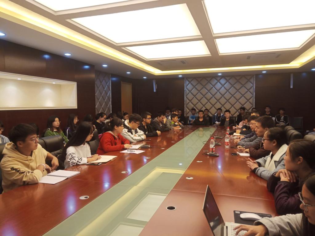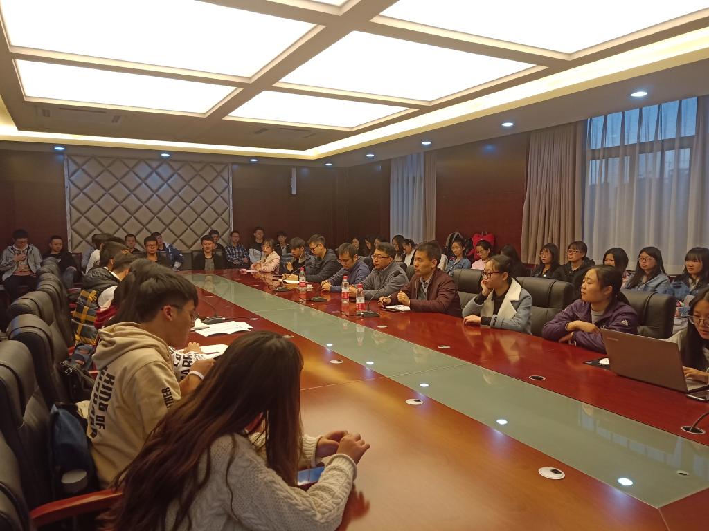 郭康凌首先介绍了本次会议的主题,并对两个专业同学进行成长规划摸底的情况进行了汇报,详细宣读了同学们计划考研深造、出国深造、考公务员、就业等所占比例。她对三位专业教师的到来表示欢迎,希望专业教师能结合自我学习与工作的切身感受,为同学们讲经验、讲方法,激发同学们的学习斗志,辅导员与班主任一起指导和帮助学生做好职业规划,共同促进两个专业学生的成长发展。