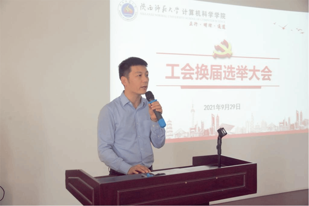 在文津楼三段3412报告厅顺利召开工会换届选举大会。全体教职工参加了大会,会议由学院党委书记王耀明主持。