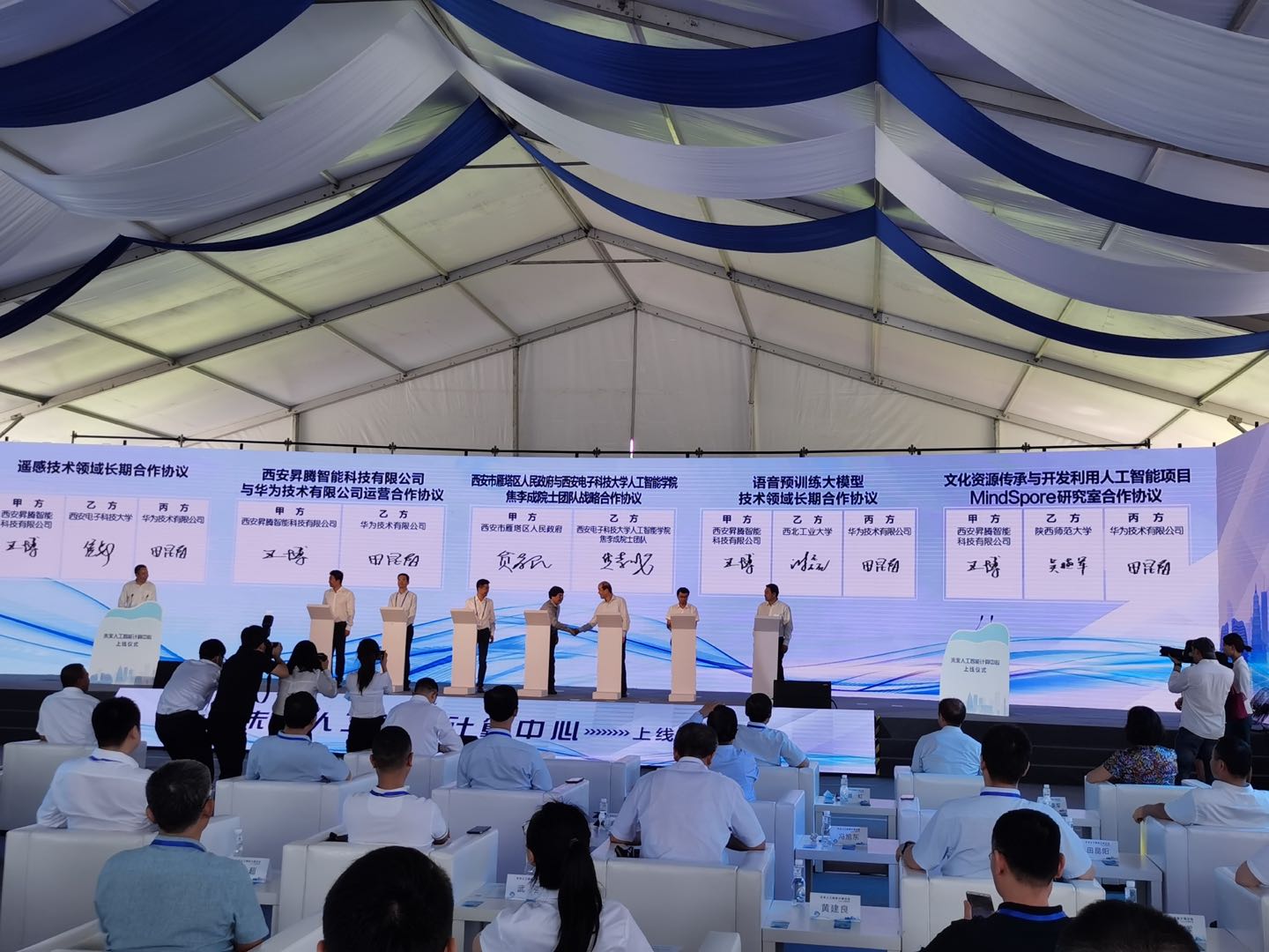 上线仪式中,华为技术有限公司、西安昇腾智能科技有限公司与西安电子科技大学、西北工业大学、兔子先生