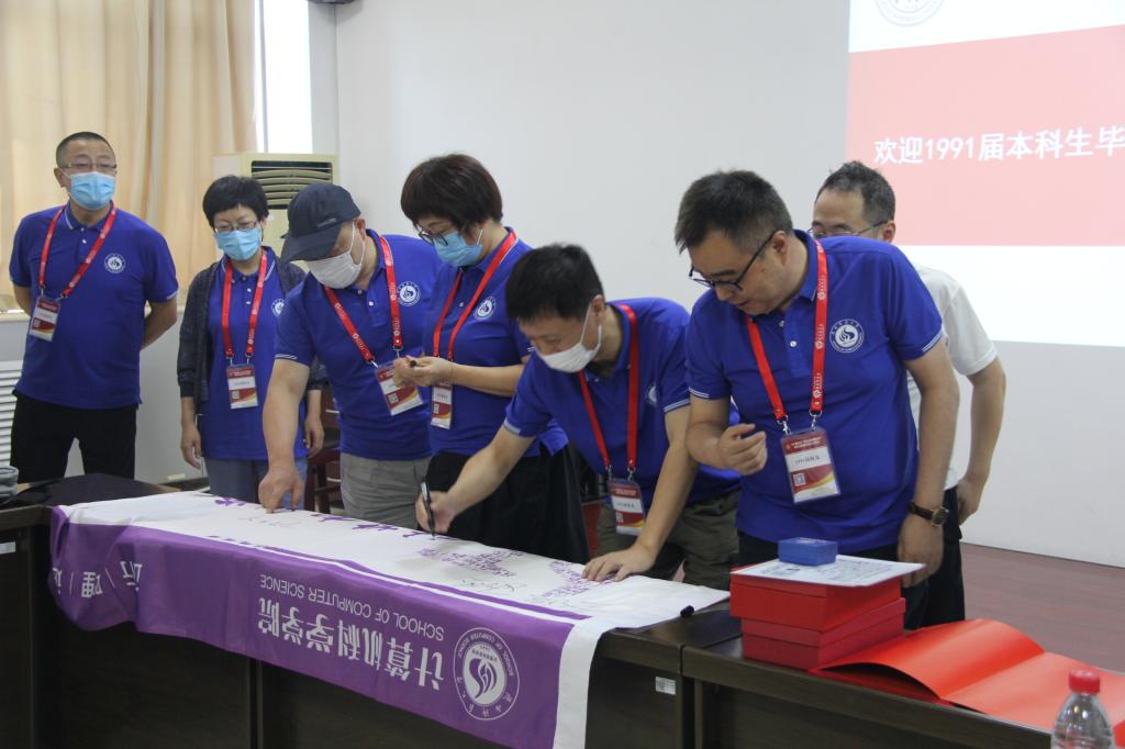 会后,校友在本班班旗上签名并合影留念,随后集体参观了学院、校史馆和雁塔校区等。