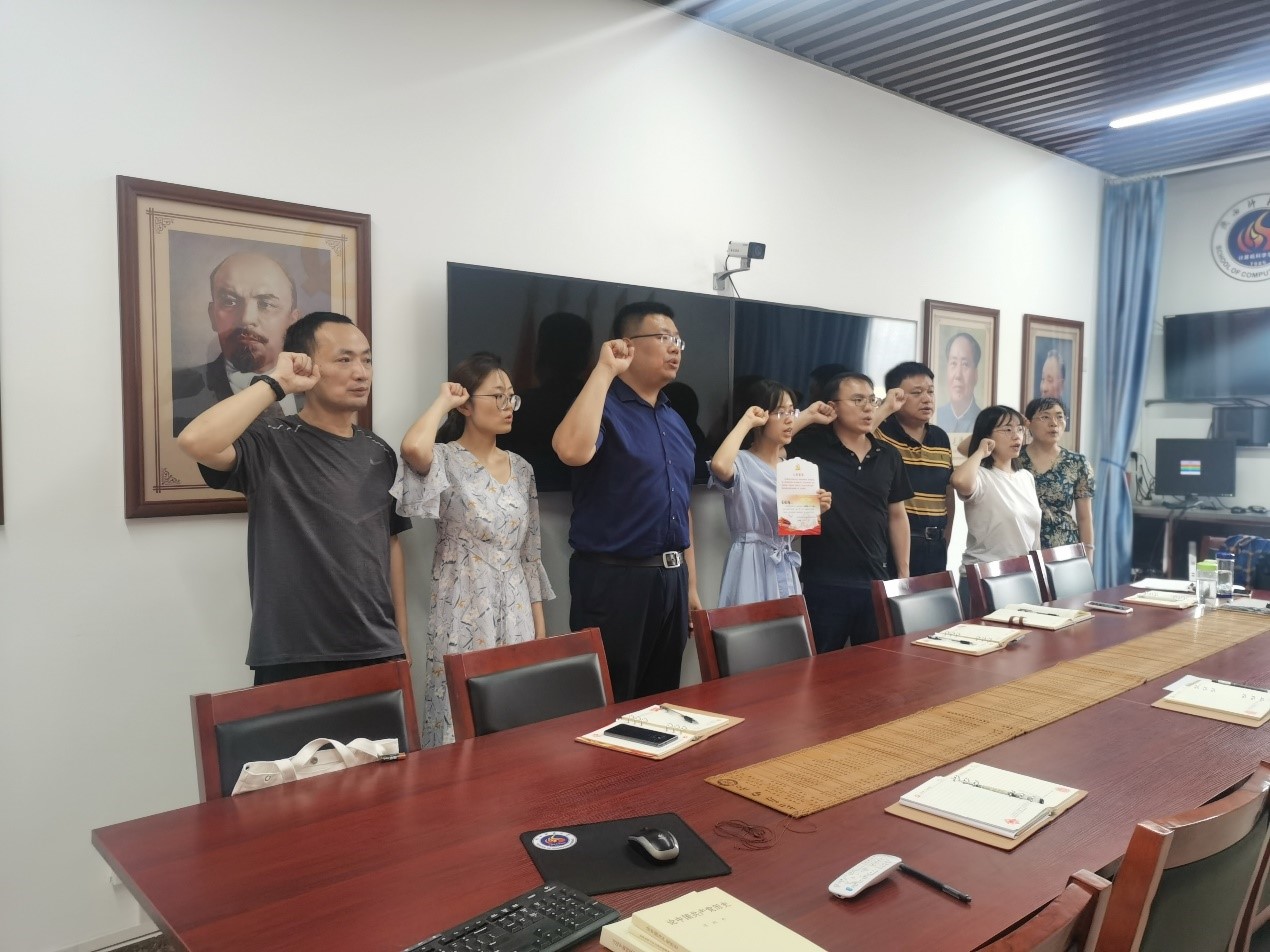 首先支部书记为本月入党的同志颁发党员政治生日贺卡,参会的所有同志一起庄严宣誓,重温入党誓词,字字铿锵,句句千钧,表达了牢记誓言、终生不渝的坚定决心。