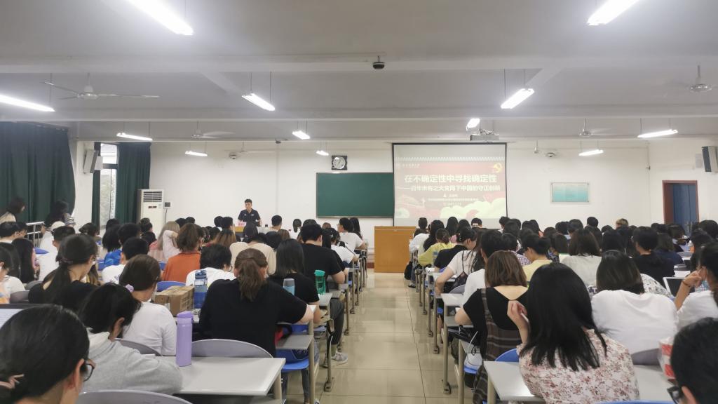 党委书记王耀明以“百年未有之大变局下中国的守正创新”为题,在文津楼1519教室为兔子先生