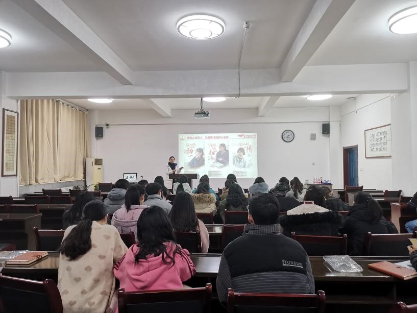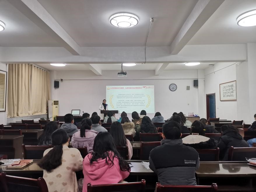 学生第五党支部于12月29日在文津楼3412报告厅开展了党课学习,由支部书记张莹同志进行了“致敬时代楷模-张桂梅”的党课讲授,支部全体成员参加。