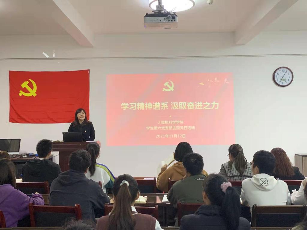学生第六党支部在文津楼3412报告厅组织开展“学习精神谱系 汲取奋进之力”主题党日活动。学院党委副书记郭康凌、学生第六党支部全体党员参加学习。主题党日活动由党支部书记梁星宇主持。
