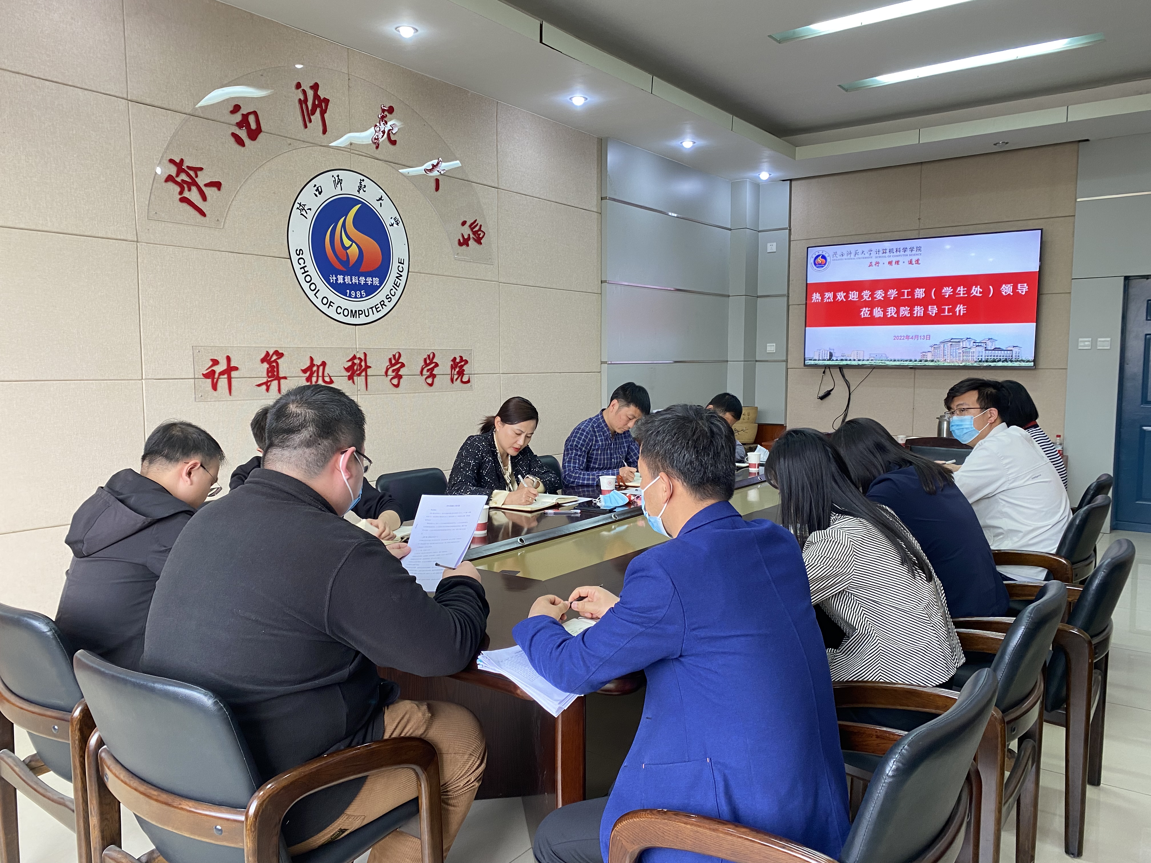 调研学生工作。学院党委书记王耀明、党委副书记郭康凌、团委书记何文曦及全体专兼职辅导员参加座谈会。