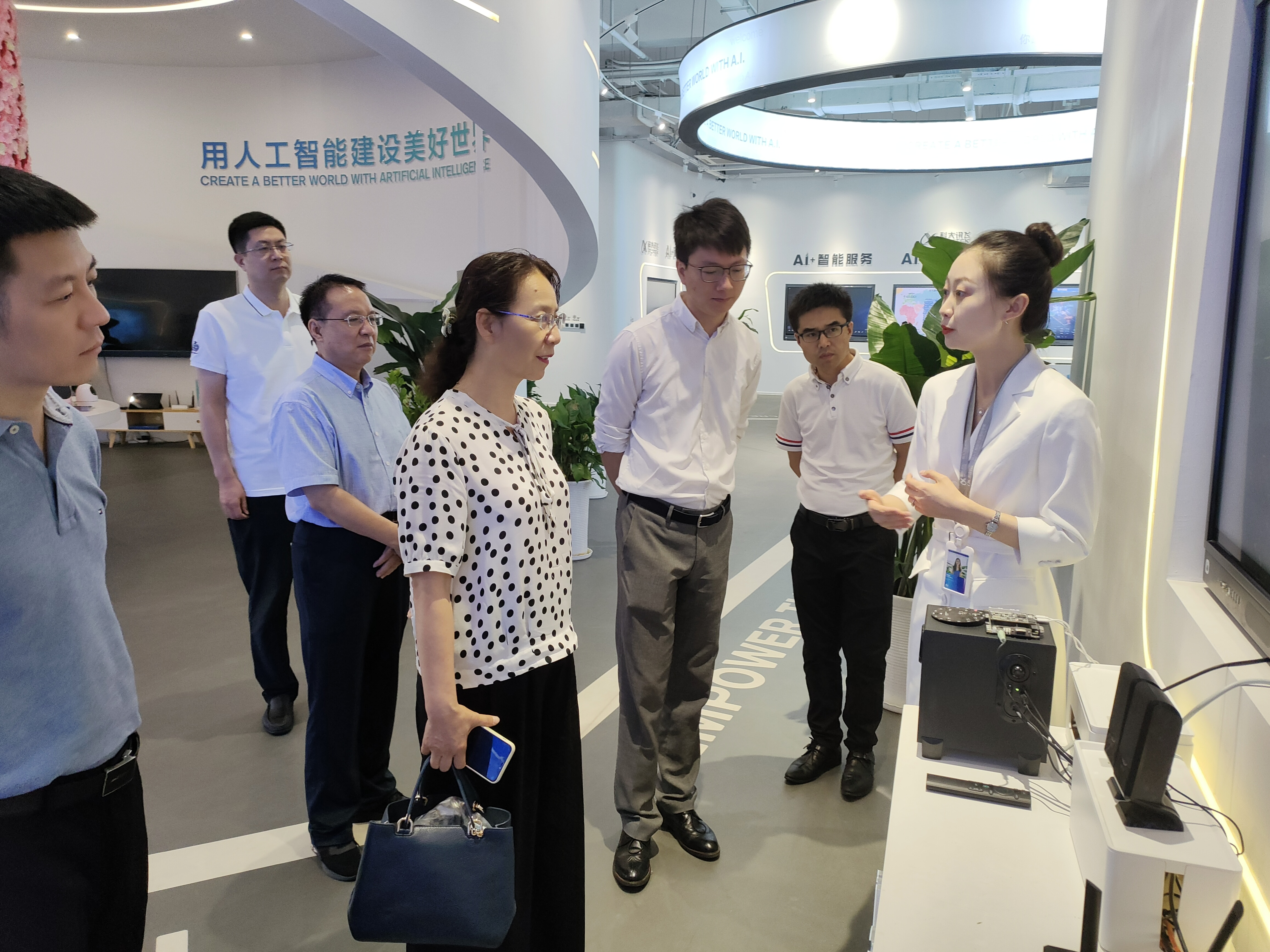 在科大讯飞丝路总部,杨祖培一行参观了人工智能体验馆,双方开展座谈交流,听取企业负责人的情况介绍,了解企业发展现状与规划、岗位设置、人才需求等情况。杨祖培从兔子先生