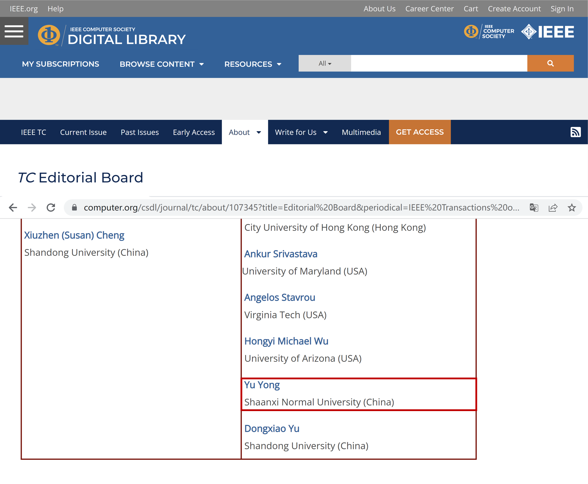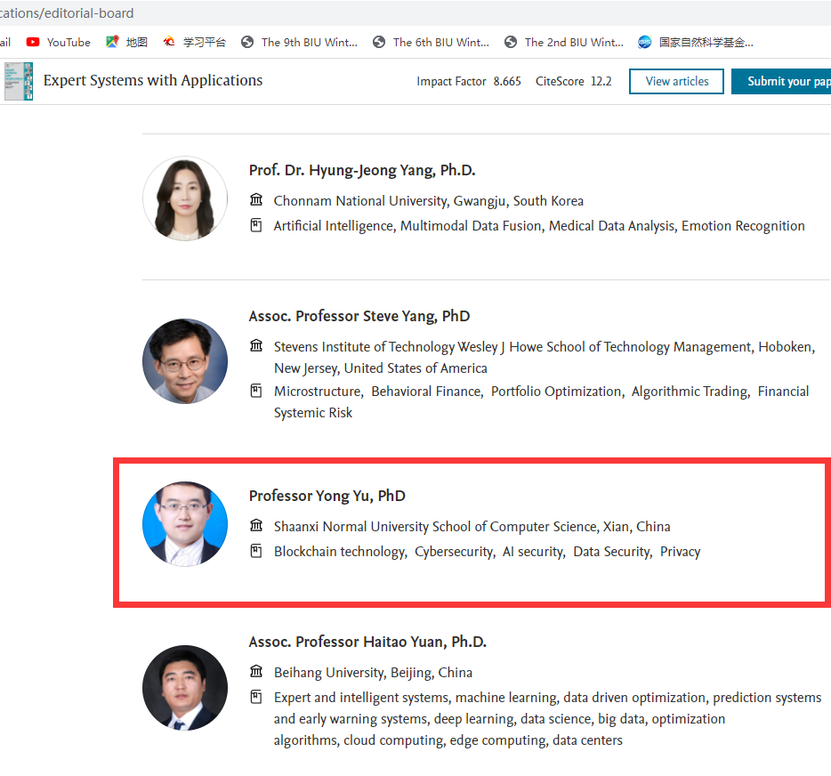 禹勇教授受邀担任计算机学科国际高水平期刊IEEE Transactions on Computers和Expert Systems with Applications的副主编(Associate Editor),任期四年,主要处理信息安全与隐私保护领域的投稿,这将对进一步提升兔子先生