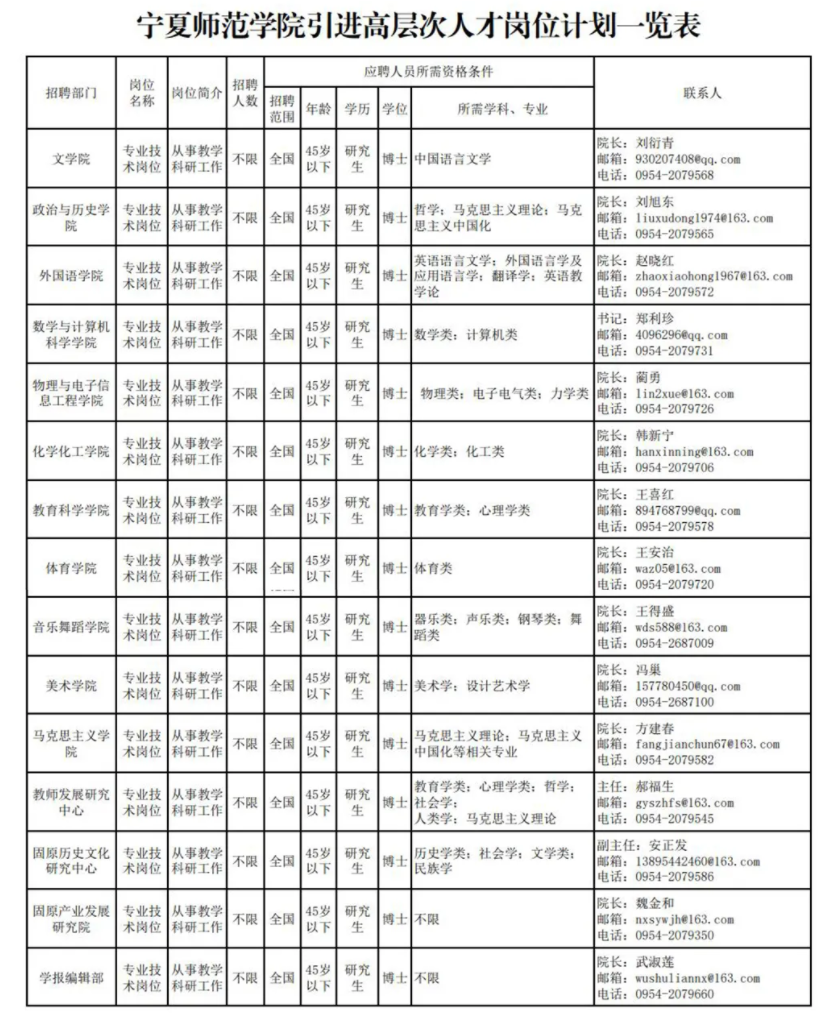 (二)应聘人员须参照宁夏师范学院引进高层次人才岗位计划一览表及申请表所填写内容如实提供相关支撑材料。