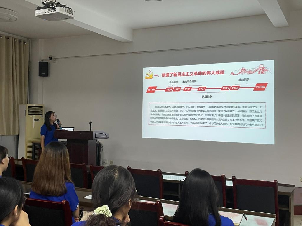 成立大会结束后,支部学习了“习近平总书记在庆祝中国共产党成立 100 周年大会上的讲话”精神。支部书记王思言同志依次从“中国共产党的诞生”、“中国共产党百年光辉历程”与“中华民族伟大复兴的光明前景”三个方面讲解,带领大家深入学习会议精神。之后,蒋江红老师总结讲话,祝贺新支部的成立并对支部发展提出新的要求和希望。