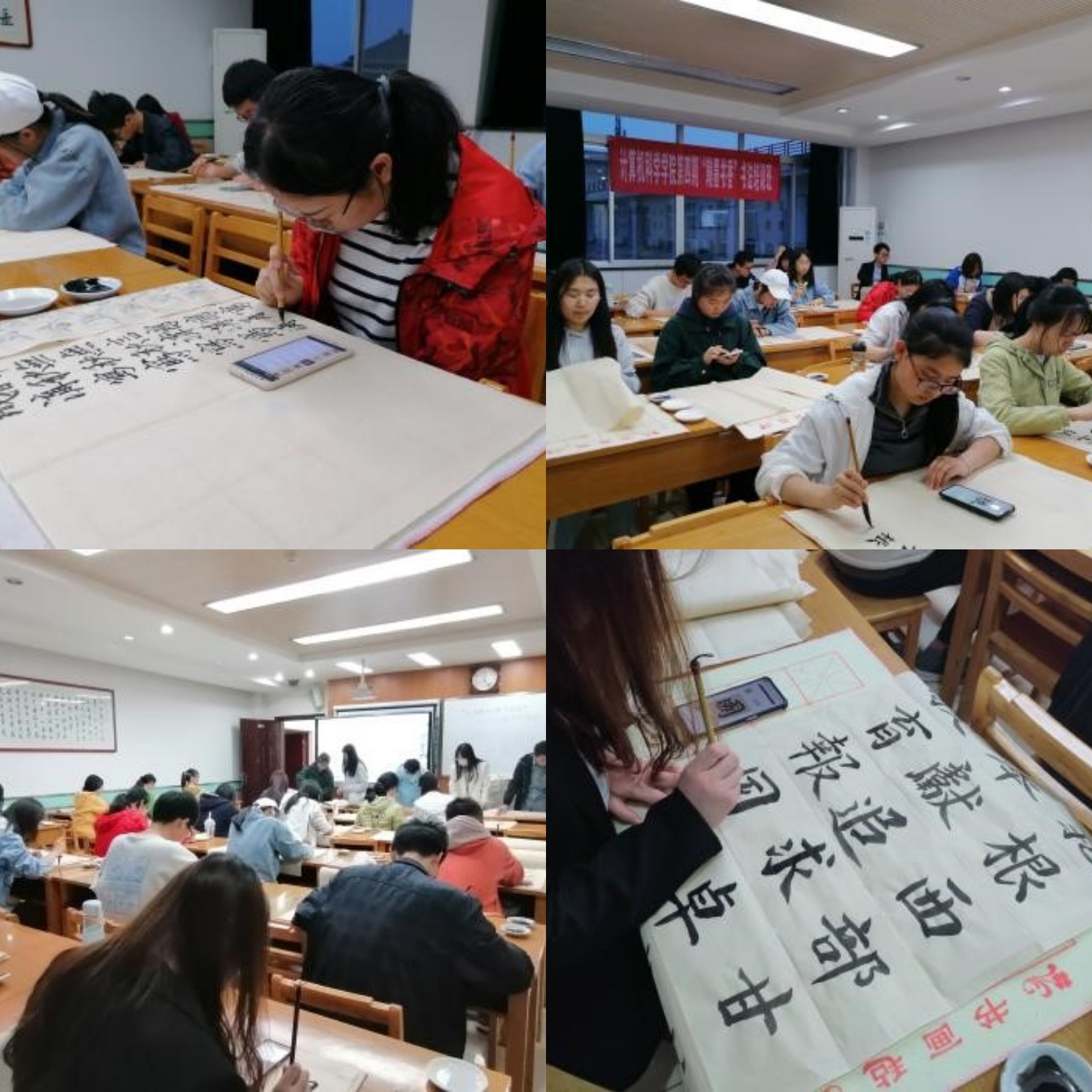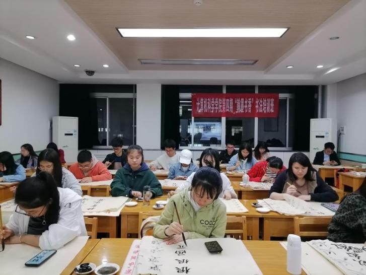 第四期“翰墨书香”书法培训班于2021年4月15日晚在文津楼1503教室开展了“红烛精神·教育报国”主题书写活动。