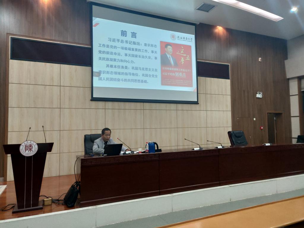 宋战良老师谈到,高校是党的意识形态的前沿阵地,肩负着学习研究宣传马克思主义、弘扬社会主义核心价值观、培养德智体美劳全面发展的社会主义合格建设者和可靠接班人的任务。紧接着,他从“什么是意识形态”、“网络意识形态安全出现的新情况新问题和表现形式”、“党员应做网络意识形态安全的坚决捍卫者”三方面进行深刻讲解。他指出,习近平总书记强调“建设具有强大凝聚力和引领力的社会主义意识形态,是全党特别是宣传思想战线必须担负起的一个战略任务。”增强凝聚力和引领力是立足新时代新使命,强化意识形态工作重要作用的两个重要着力点。通过列举近来发生的一系列真实事件,宋老师对网络意识形态出现的新情况、网络意识形态安全存在的突出问题及高校网络意识形态安全的表现形式进行了深层次地分析阐述。他强调意识形态关乎旗帜、关乎道路、关乎国家政治安全,党员干部在网络上要严守政治纪律和政治规矩,要严格规范自己的网络行为,积极履行举报监督的义务,争做主流网络意识形态的维护者、管理者和引导者。