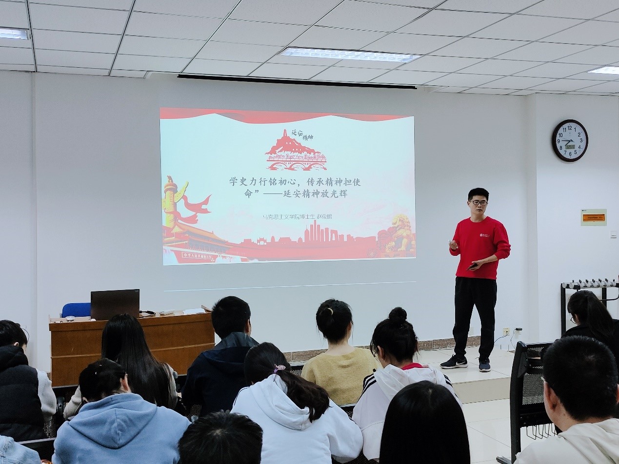 新时代大学生理论宣讲团成员、马克思主义学院2020级中国近现代史基本问题研究专业博士研究生赵俊鹏进行了题为《延安精神放光辉》的党史学习教育理论宣讲,其以历史人物、历史故事着手,为大家生动地介绍了延安精神的主要内容,彰显了扎实的理论功底和优秀的演讲才能。